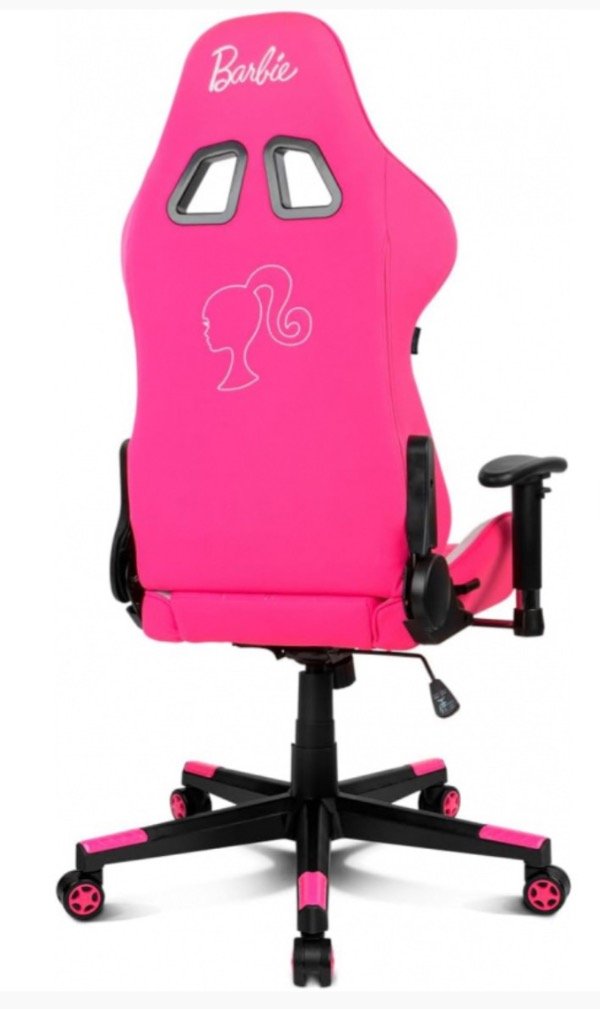 Con un diseño gaming muy cuidado en color rosa, incorpora en color blanco el reconocible logo de Barbie tanto en la parte delantera como en la parte trasera del respaldo de la silla, así como la silueta de la emblemática muñeca favorita en el respaldo y el cojín cervical. Cuenta, además, con acabados blancos en los laterales que le dan el toque ideal para completar tu setup fashionista.