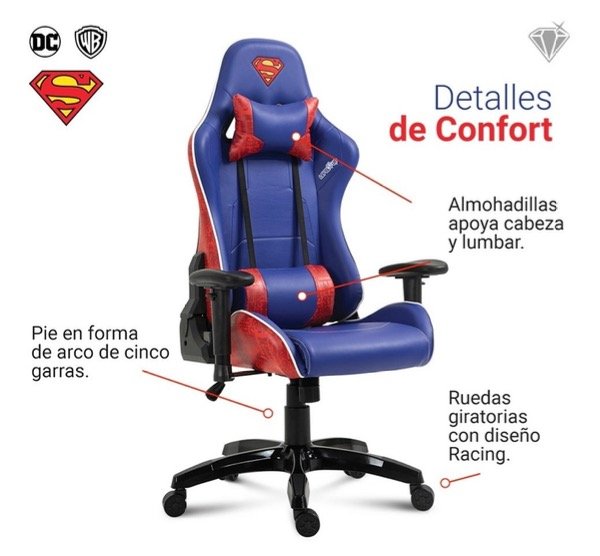 Potencia y estilo para tus sesiones de juego. La Silla Gamer Superman Metrópolis combina un diseño atractivo con características ergonómicas que te brindan la comodidad que necesitas durante largas horas de juego.